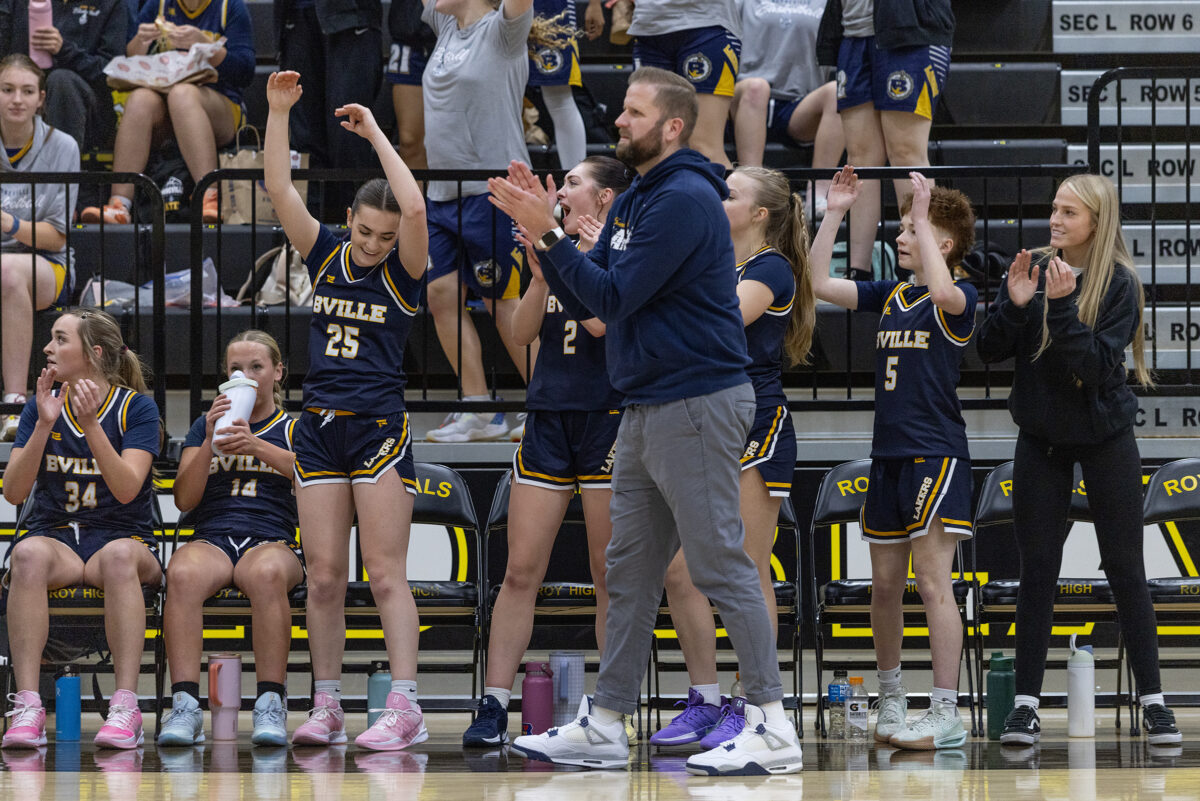- Bonneville High girls basketball head coach Johnny Caine claps as the Lakers’ bench cheers for a play in a game against Roy on Wednesday, Jan. 7, 2026, in Roy.