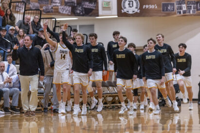 - Davis High boys basketball players celebrate a play during a Region 1 boys basketball game against Weber on Friday, Jan. 9, 2026, in Kaysville.