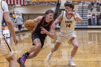 - Davis High’s JT Turley (11) drives against Weber’s Derik Bowden (2) in a Region 1 boys basketball game Friday, Jan. 9, 2026, in Kaysville.