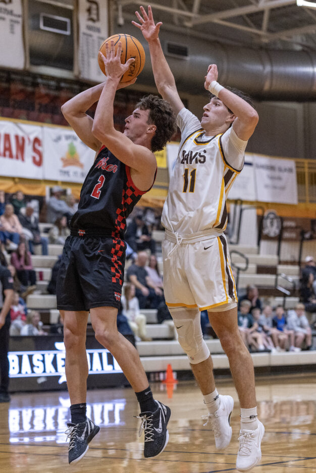 - Weber High’s Derik Bowden (2) rises to shoot as Davis High’s JT Turley (11) tries to block the attempt in a Region 1 boys basketball game Friday, Jan. 9, 2026, in Kaysville.