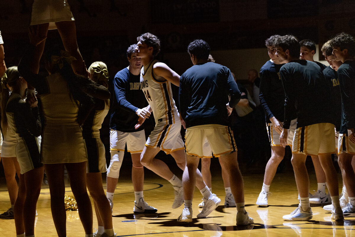 - Davis High player Cameron Brower (14) slaps hands with teammates during starting lineup introductions before a Region 1 boys basketball game against Weber on Friday, Jan. 9, 2026, in Kaysville.