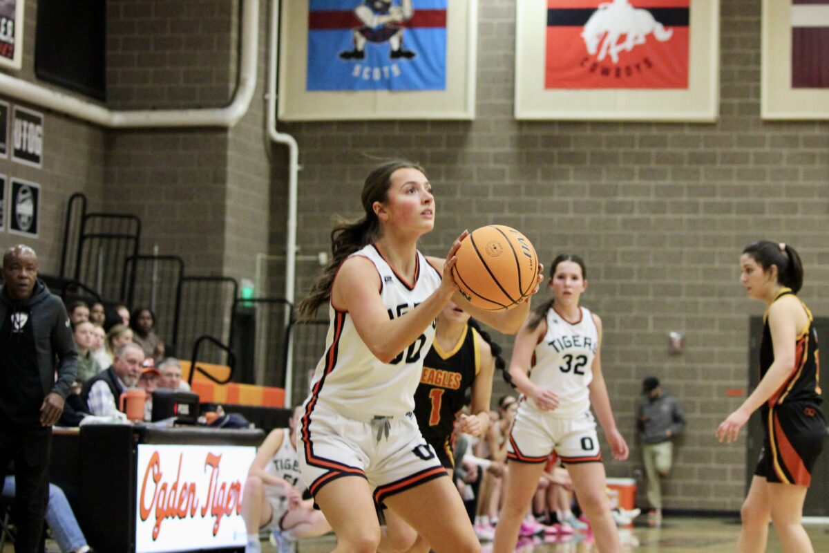 - Ogden High’s Taylor Duke lines up a 3-point try during a region girls basketball contest against Layton Christian on Thursday, Jan. 22, 2026, at Ogden High School in Ogden.