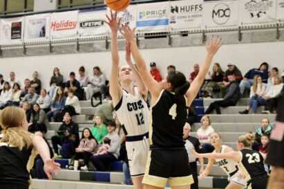 - Syracuse High’s Rachel McBride, defended by Davis High’s Kate Willard, right, gets a shot up during a region girls basketball contest on Friday, Jan. 23, 2026, at Syracuse High School in Syracuse.