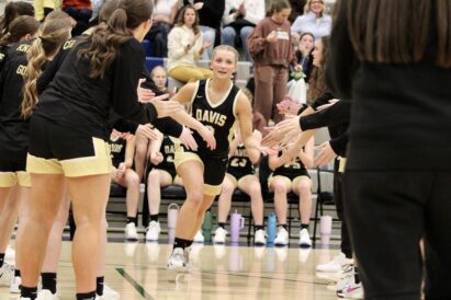 - Davis High’s Chloe Peery runs onto the court as her name is called during the starting lineups before a region girls basketball contest in Friday, Jan. 23, 2026, at Syracuse High School in Syracuse.