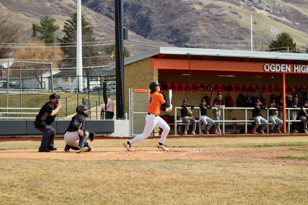 - Ogden High’s Devin Rhodes watches the ball sail during a nonregion home baseball game against North Sanpete on Monday, March 9, 2026, at Ogden High School in Ogden.