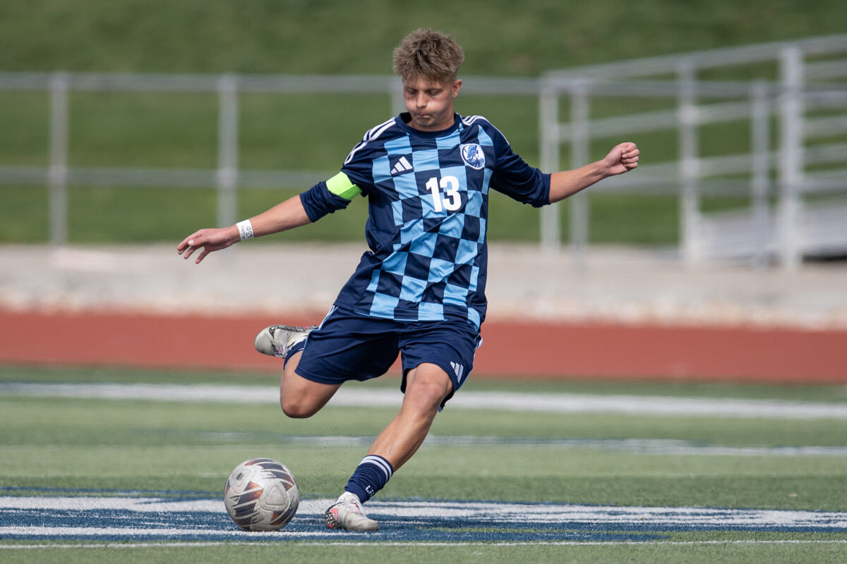 - Layton High’s Davis Madsen rears back for a kick during a Region 1 boys soccer match against Davis on Friday, March 27, 2026, in Layton.