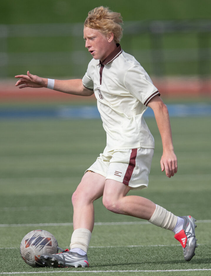 - Layton High’s Isaac Kartchner takes care of the ball during a Region 1 boys soccer match against Davis on Friday, March 27, 2026, in Layton.