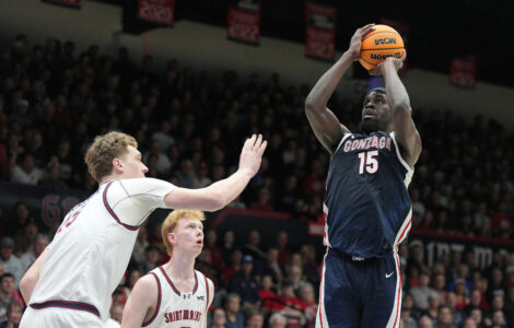 MORAGA, Calif. (AP) — Mikey Lewis made seven 3-pointers and scored 31 points to help Saint Mary's beat No. 9 Gonzaga 70-59 on Saturday night, giving the Gaels a share of the West Coast Conference regular-season title.
