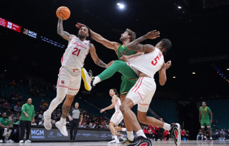 LAS VEGAS (AP) — Emanuel Sharp scored 17 points to lead No. 3 Houston to a 66-56 victory over Notre Dame on Wednesday in the consolation game of the Players Era Championship.
