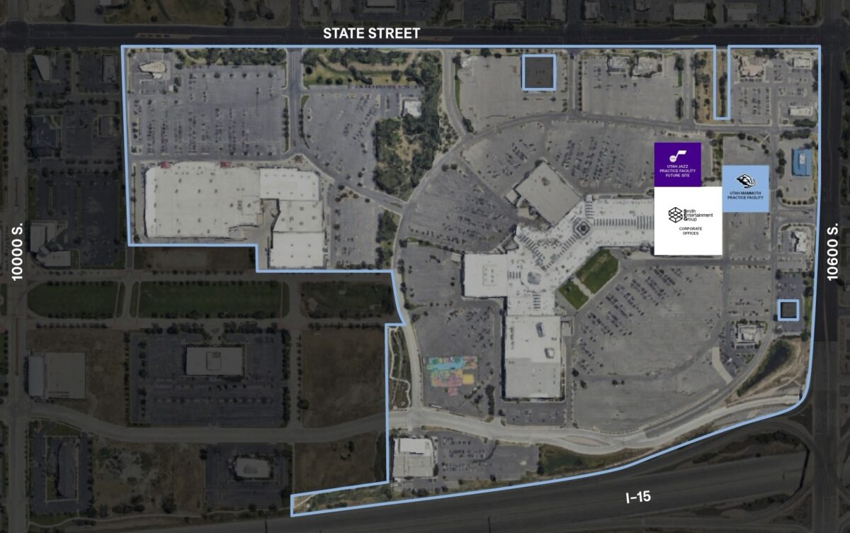 - This map of The Shops at South Town shows Smith Entertainment Group’s planned addition of a Utah Jazz practice facility next to the new Utah Mammoth facility in Sandy.
