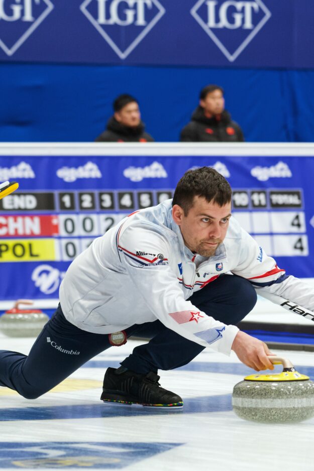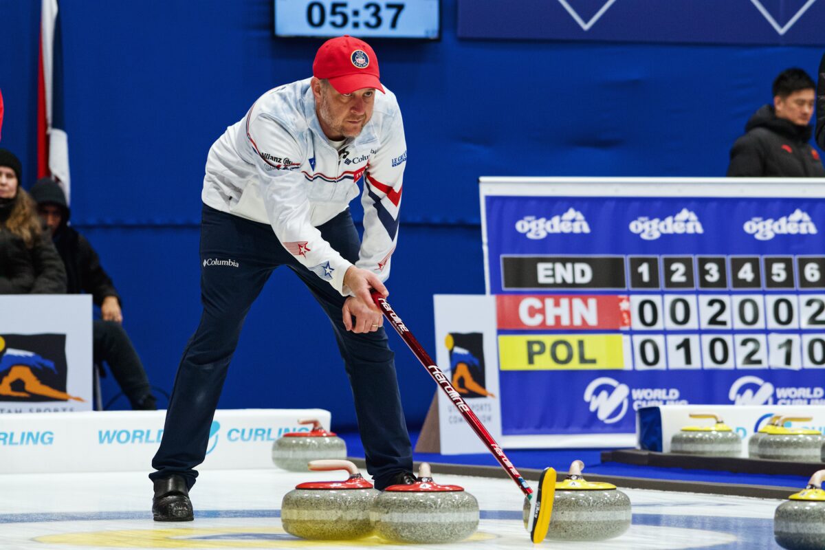 - The United States’ Christopher Plys delivers the curling stone during a game against Switzerland at the 2026 World Men’s Curling Championship at the Weber County Ice Sheet in Ogden on Thursday, April 2, 2026.
