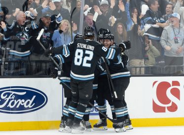 Karel Vejmelka made 29 saves for the Mammoth, who had only 12 shots on goal against Hart. Keller had two assists for the first multi-point game of his playoff career.