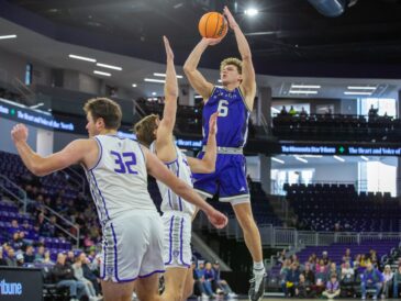 WSU’s Trevor Hennig hit a deep 3-pointer to make the score 9-7 for the home team at the first timeout of the game. Things went sideways from there for the Wildcats as star scorer Nolan Minessale got going for St. Thomas and nearly outscored the Wildcats by himself in the first half.