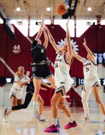 Niumeitolu, a redshirt freshman, scored a career-high 14 points to lead WSU’s group of five double-digit scorers. Shaffer-Lauer scored 13 points, Billy 12 and Hannah Robbins 10. White finished with nine points and five assists.