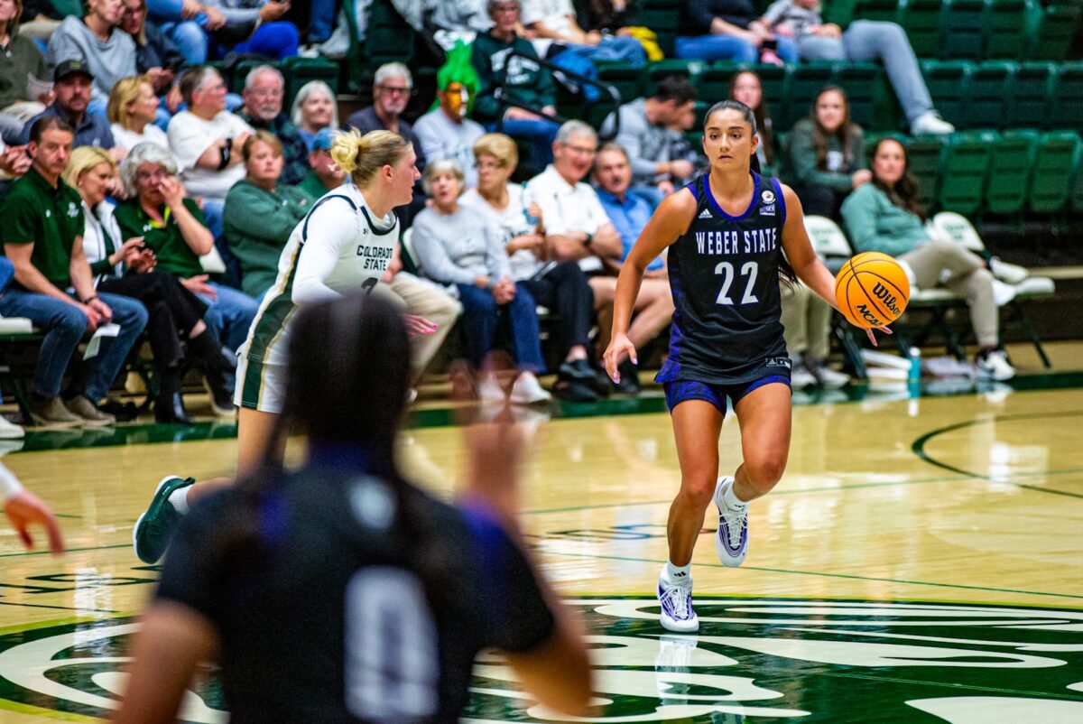 - Weber State guard Sydney White (22) brings the ball up the court against Colorado State on Tuesday, Nov. 4, 2025, in Fort Collins, Colo.