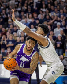 “You know it’s going to come in this building. That’s just a good basketball team,” Duft said about Utah State’s run. “You gotta withstand it, and we did that in the first half but we just had a couple offensive breakdowns. When you play these guys, you just can’t have those live-ball turnovers because they’re getting in transition and then you’re going back and playing against their zone.”