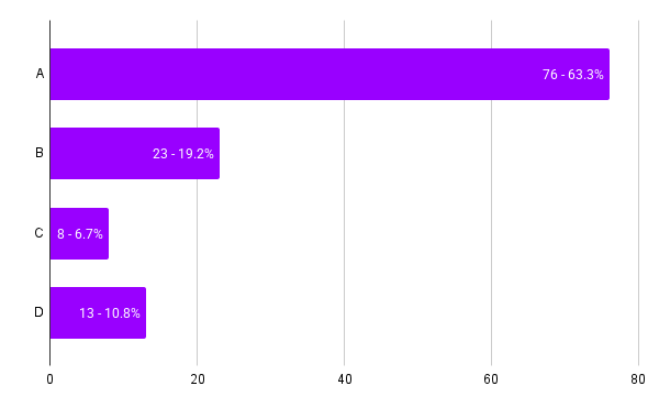 Of 120 responses, most followers chose an A grade and 82.5% selected either A or B.