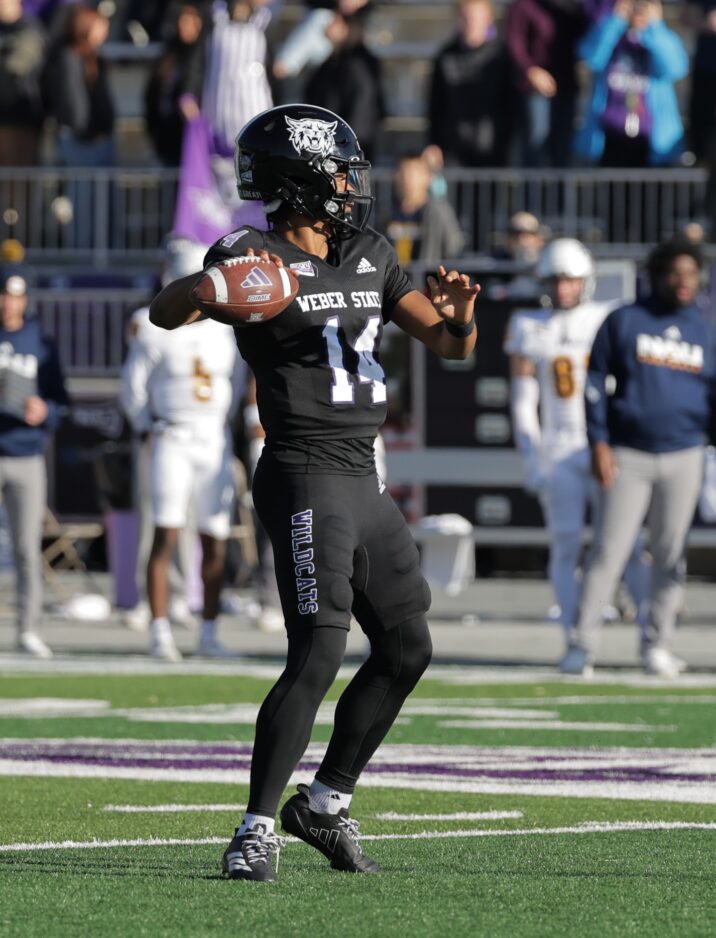 - Weber State quarterback Kingston Tisdell rolls out against Northern Arizona in a game Saturday, Nov. 22, 2025, at Stewart Stadium in Ogden.