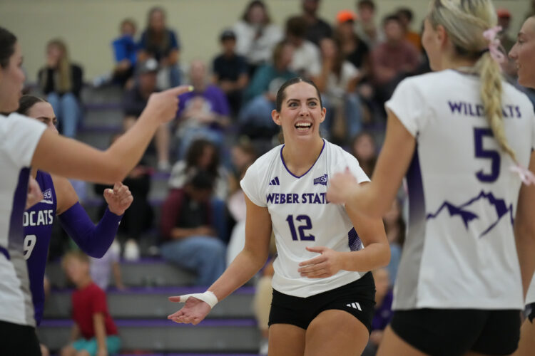 Weber State's Kaylie Ray (12) celebrates a point with her team in a match against Idaho State on Friday, Oct. 3, at Swenson Gym in Ogden.Weber State volleyball tallied convincing home sweeps over Montana and Montana State to close the 2025 regular season over the weekend, setting the Wildcats up with the No. 4 seed in the upcoming Big Sky Tournament and a rematch with the Griz.
