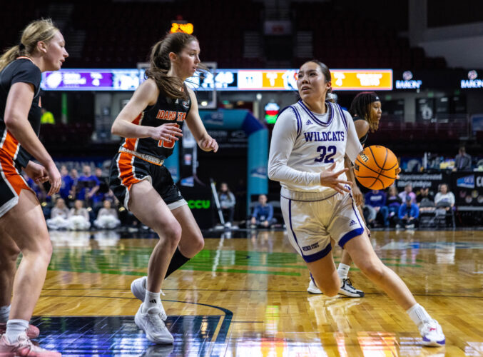 Weber State's Lanae Billy (32) drives against Idaho State's Alyse Aby in a Big Sky tournament quarterfinal Monday, March 10, 2025, in Boise, Idaho.Weber State men’s basketball usually spends time in the top half of the Big Sky Conference while the WSU women had been mainstays at the bottom.