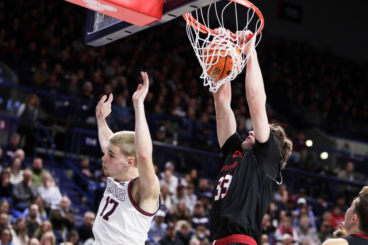 - Seattle forward Brock Felder (33) dunks against Gonzaga’s Mario Saint-Supery (17) a game on Jan. 2, 2026, in Spokane, Wash.
