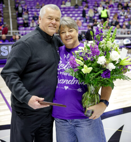 Joel Bass and his wife, Beth Bass, were recognized at halftime of the WSU men's basketball game Saturday, Feb. 22. The pair took center ...