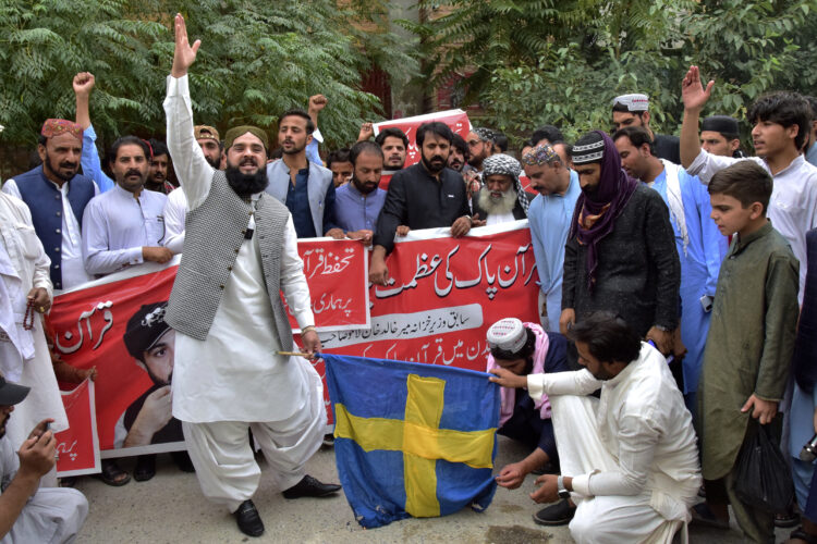 Supporters of Baluchistan Awami Party shout slogans and burn a representation of Swedish flag during a demonstration, in Quetta, Pakistan, Wednesday, July 5, 2023, against the desecration of Islam's holy book Quran that took place in Sweden.STOCKHOLM (AP) — A Quran burning and a string of requests to approve the destruction of more holy books have left Sweden torn between its commitment to free speech and its respect for religious minorities.
