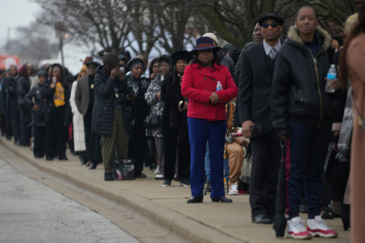 People stand on line to enter the Public Homegoing Service for the Rev. Jesse Jackson at the House of Hope in Chicago, Friday, March 6, 2026. (AP Photo/Erin Hooley)