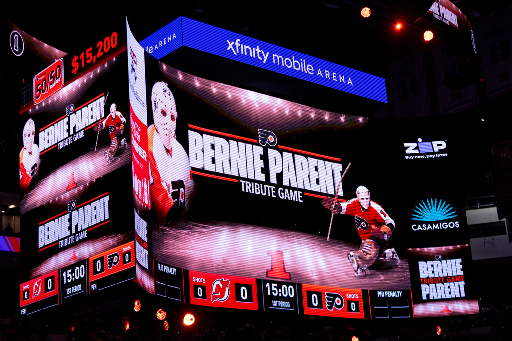 With that, the spotlight shone on Parent’s retired No. 1 banner that hangs in the rafters, just a row ahead of the two oversized Stanley Cup championship banners — the only ones in franchise history — that catch the eye in Flyers orange and might not even exist at all if not for the affable goalie from Montreal.